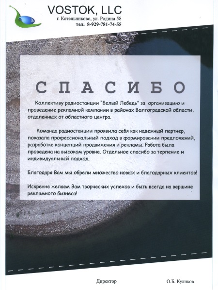 Реклама на радио "Белый лебедь"